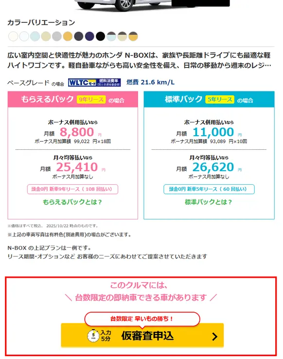 再リース契約のリース金額は、車の残価や再リース契約の条件などにより決定されますので、以前の料金と異なる場合があります。