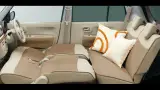 車内に乗り込むと、まるでお気に入りのリビングルームにいるような感覚に。シートは程よい弾力があり、柔らかすぎず硬すぎず、快適な座り心地を提供します。ファブリック素材のシートと同じ柄が肘掛けやフロント部分にも施されており、統一感のあるデザインとなっています。