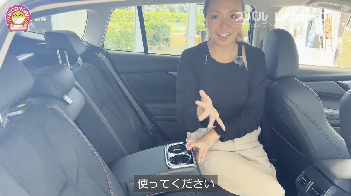 リアシートにも、フロント同様にアクセントとなる赤いステッチが施されており、デザインの統一感とスポーティさが際立ちます!座り心地はゆったりとしたタイプで、過度なホールド感がないため、非常にリラックスして長距離移動も楽しめそうです。足元にも十分なゆとりが確保されています。