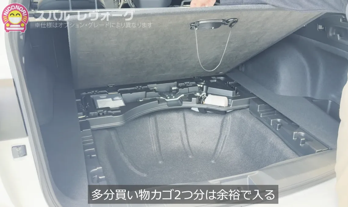 5人乗りの状態でも広々としたラケッジは、床下収納付き。ラゲッジの上下で荷室を分けられるほか、高さのある荷物を積む際にも活用できます。床下を合わせて561リットルの荷室は、ゴルフバッグやスーツケースも入りそうですね。
