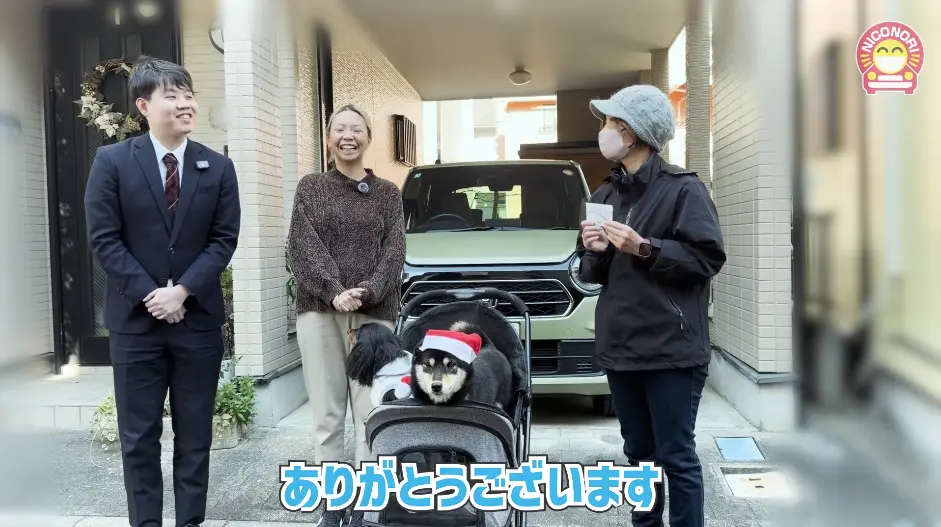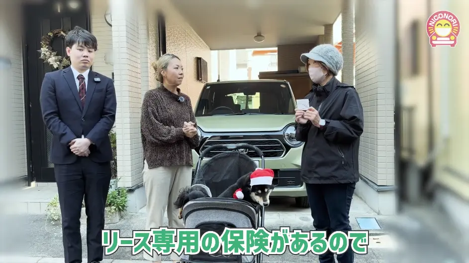 —— こんにちは、ニコノリの宮重です。今回は、営業担当の丹羽さんと一緒にキャンペーンご当選者様にインタビューしていきます。お帽子とお洋服を着たワンちゃんも来てくれました。では早速、今回リースされた車種名を教えてください。