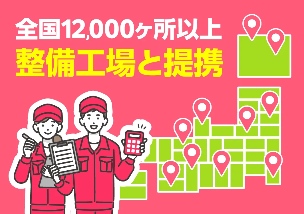 全国の整備工場と提携しているので、ご契約いただいた車両の使用場所が変更になった場合でも、移動先から近い工場を再度ご案内させていただきます。